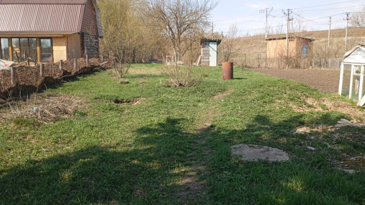 Ширина участка 10 метров, длина 43 метра. Имеется теплица.