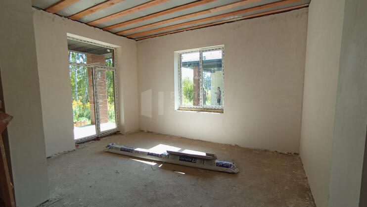 Продаётся дом на этапе окончания отделки от застройщика. Газ, электричество, вода-скважина, септик. Газовый котёл. Предчистовая отделка ( оштукатурены и ошпаклёваны стены, откосы и подоконники на окнах, разводка электричества по дому). Тёплый пол. Хорошая входная дверь.