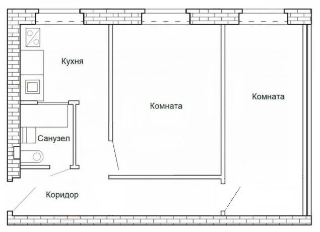 44 м2, 2-комнатная квартира