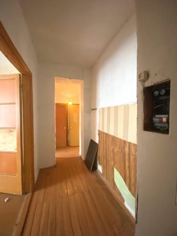 Изолированные комнаты, раздельный санузел, кладовая и большой коридор. Квартира - распашонка, два окна выходят во двор, одно - на улицу. Много света и воздуха, так как высота потолка 3 метра.